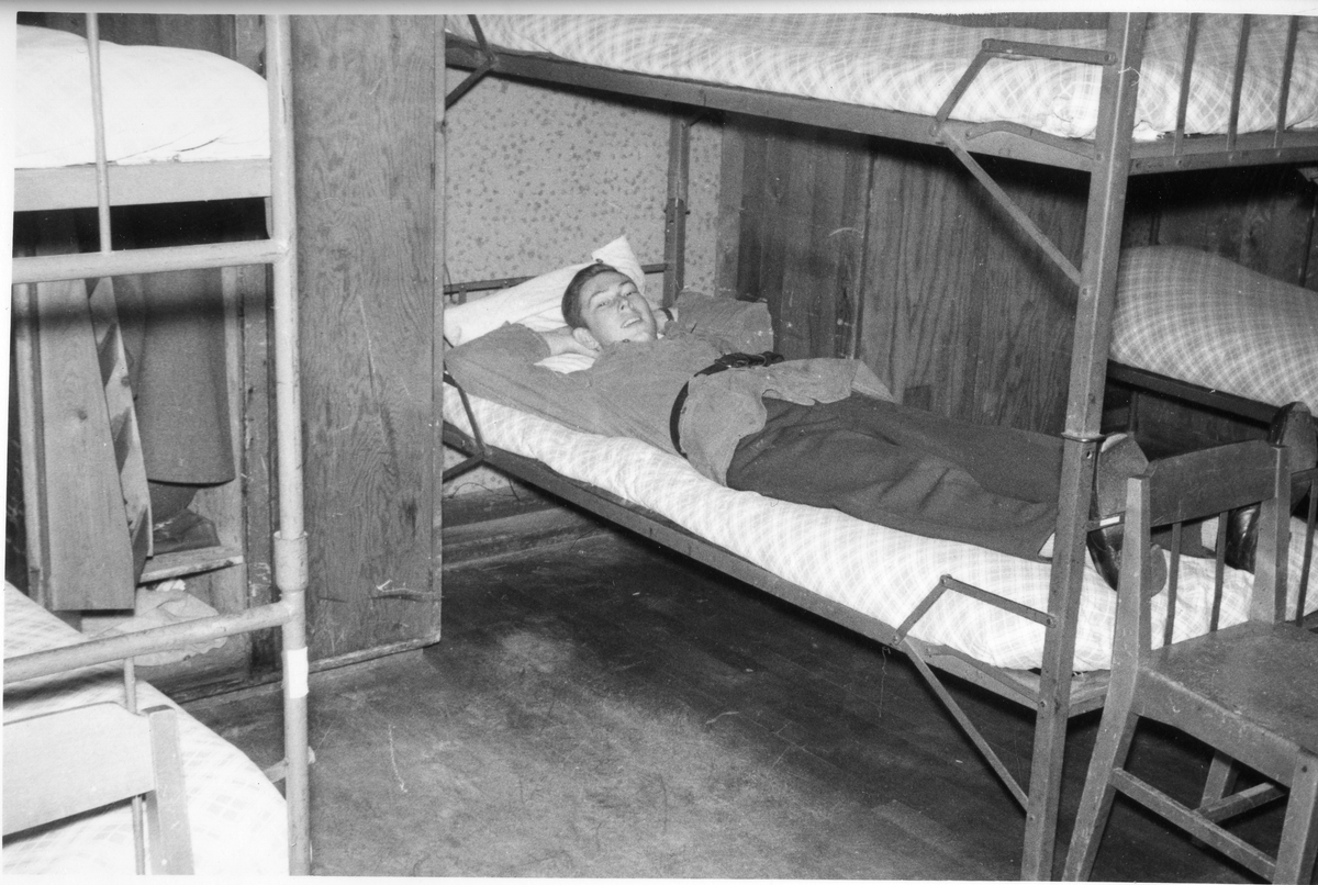 Värnpliktige ligger i sängen på 7 logementet 5 batteriet, Göta artilleriregemente A2.
