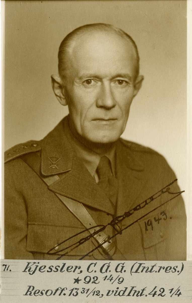 Porträtt av Carl Gustaf Gunnar Kjessler, kapten vid Intendenturkåren.