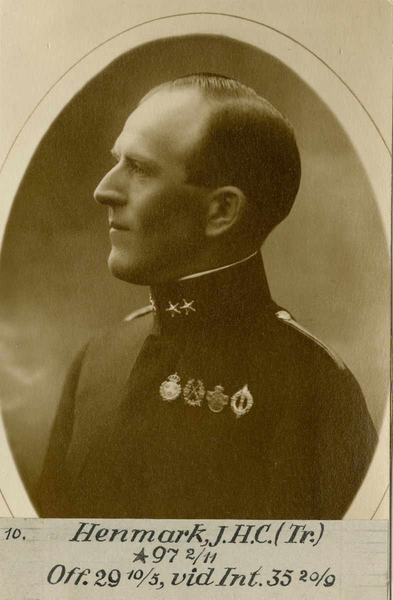 Porträtt av Johan Henrik C:son Henmark, kapten vid Intendenturkåren.