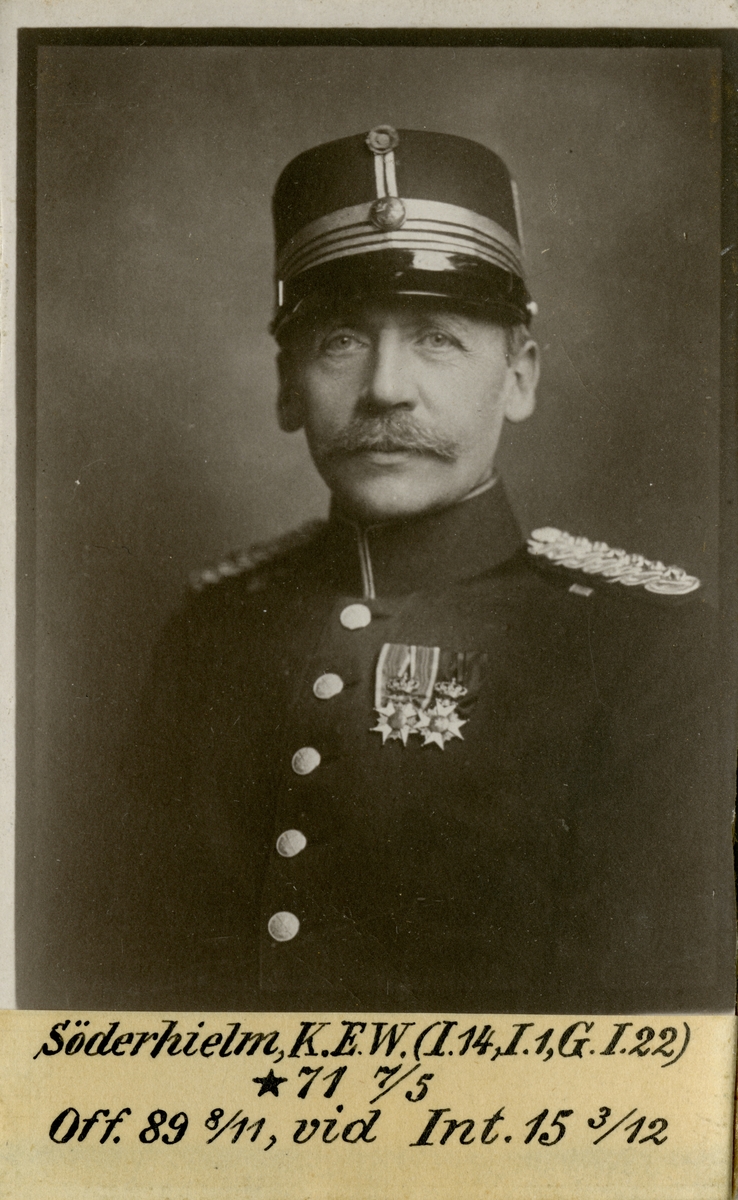 Porträtt av Knut Erik Wilhelm Söderhielm, officer vid Hälsinge regemente I 14 och Intendenturkåren.