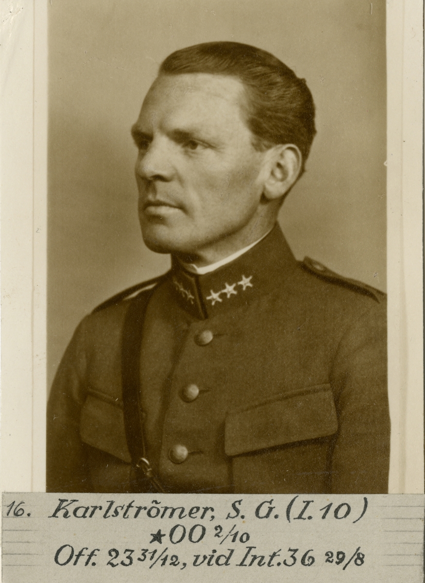 Porträtt av Stig Gunnar Karlströmer, officer vid Södermanlands regemente I 10 och Intendenturkåren.