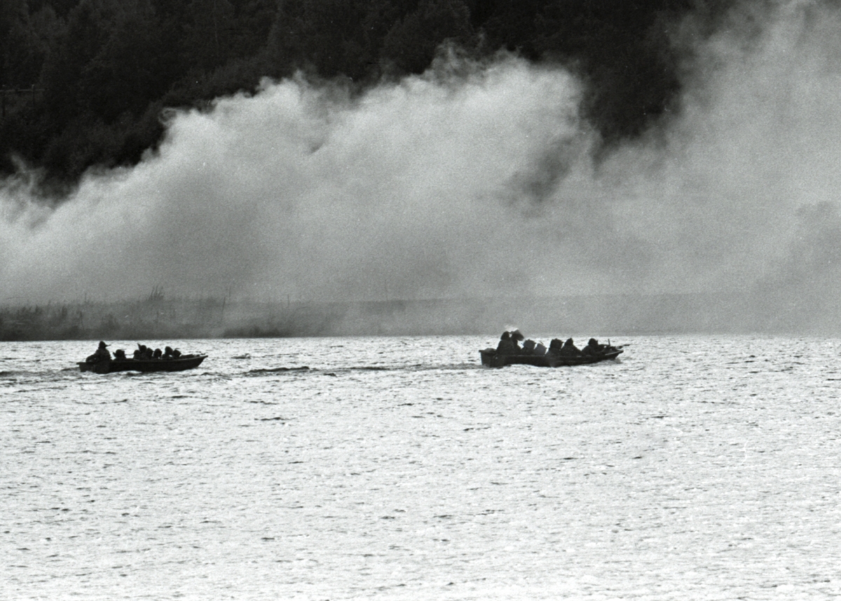 Övergång av vattendrag på militärövning på I21 Västernorrlands Regemente, Sollefteå.