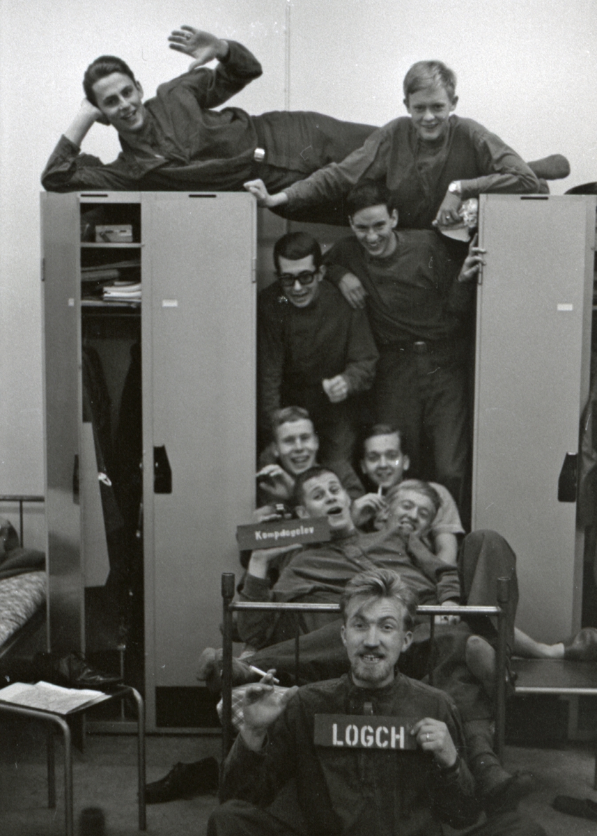 Värnpliktige spenderar fritid i logementet, I 21 Västernorrlands Regemente, Sollefteå.