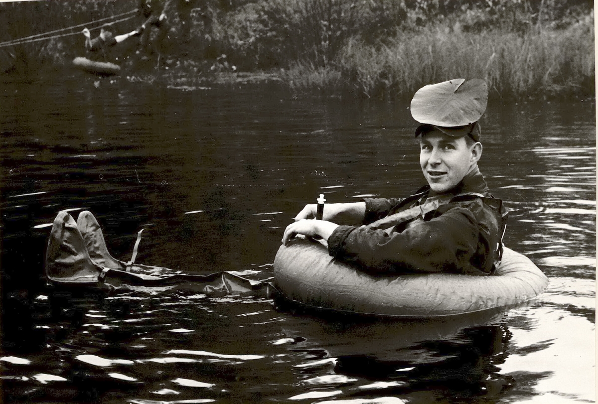 Titel: Elev från infanterikadettskolan i Ulriksdal korsar vattenled.