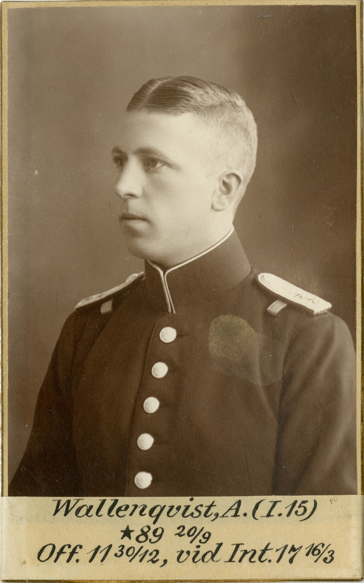 Porträtt av Arvid Wallenqvist, officer vid Älvsborgs regemente I 15 och Intendenturkåren.