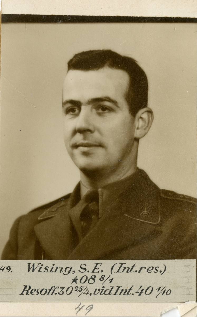 Porträtt av Sven Ejnar Wising, underlöjtnant vid Intendenturkåren.