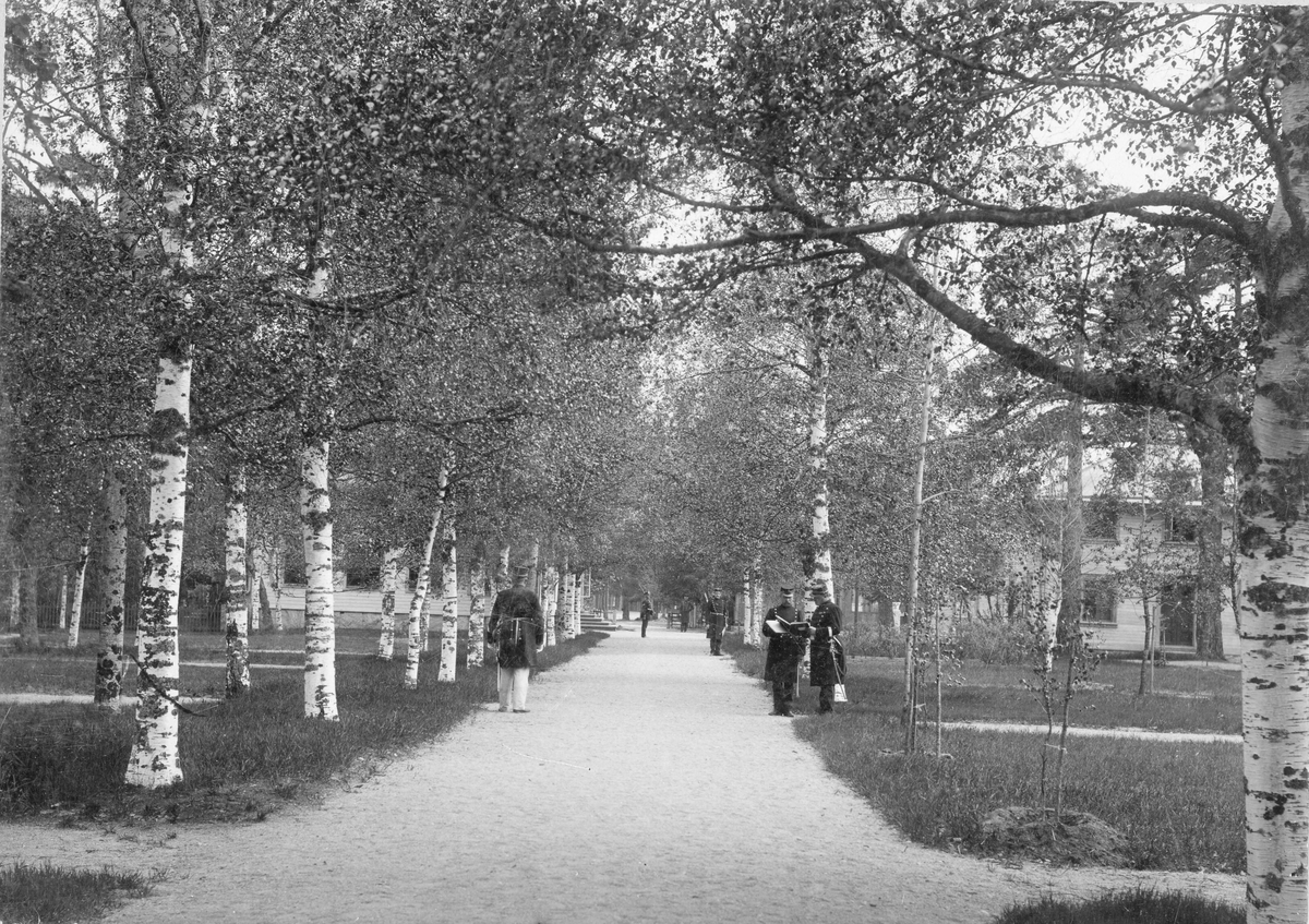 Soldater står i björkallé på Hälsinge regementes, I 14, område.
