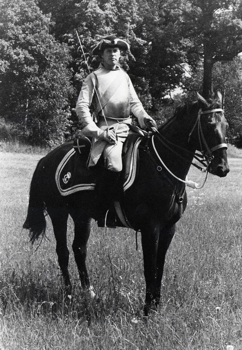 Titel: Livgardets dragoner K 1, uppvisning av historiska kavalleriuniformer på Fisksjöäng.