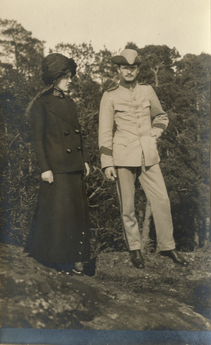Titel: Foto på en man och en kvinna stående på bergsknalle.