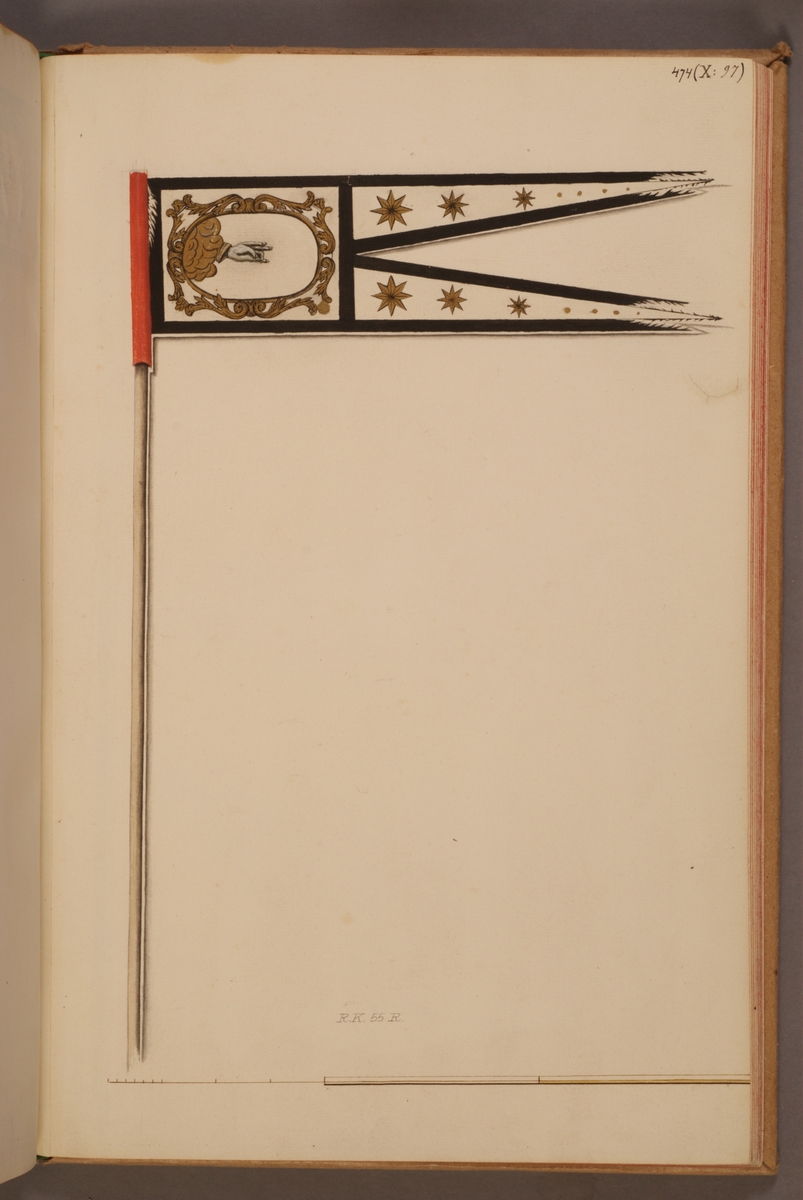 Avbildning i gouache föreställande fälttecken taget som trofé av svenska armén. Den avbildade lansfanan finns bevarad i Armémuseums samling, för mer information, se relaterade objekt.
