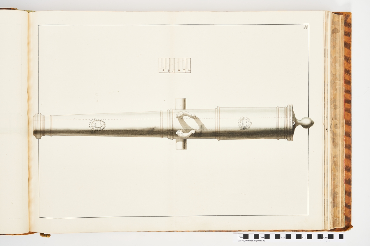 Avbildning föreställande romersk kejserlig trofé med kejsar Ferdinand III:s vapen. Ingår i volym med avbildade äldre svenska eldrör förvarade på fästningar samt eldrör erövrade åren 1598-1679.