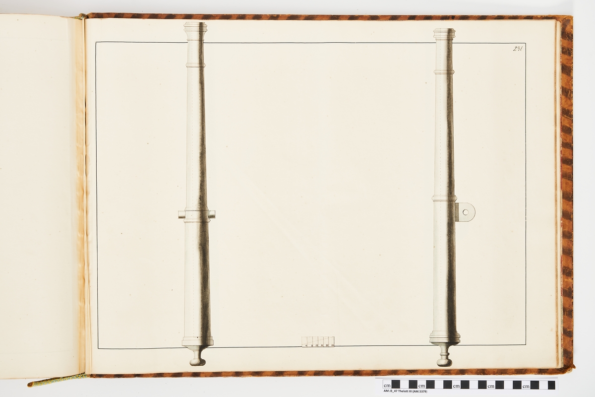Avbildning föreställande troféer av okänd nationalitet. Ingår i volym med avbildade äldre svenska eldrör förvarade på fästningar samt eldrör erövrade åren 1598-1679.