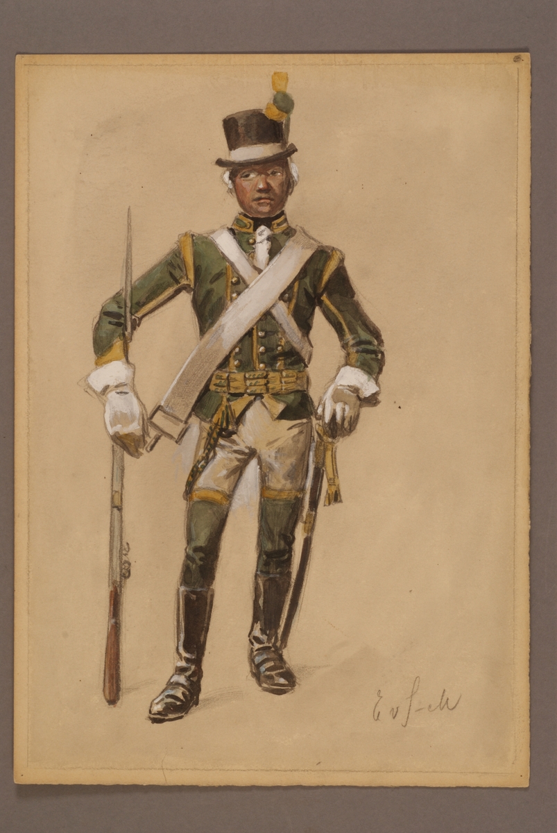 Plansch med uniform för lätt dragon vid Bohusläns dragoner, ritad av Einar von Strokirch.