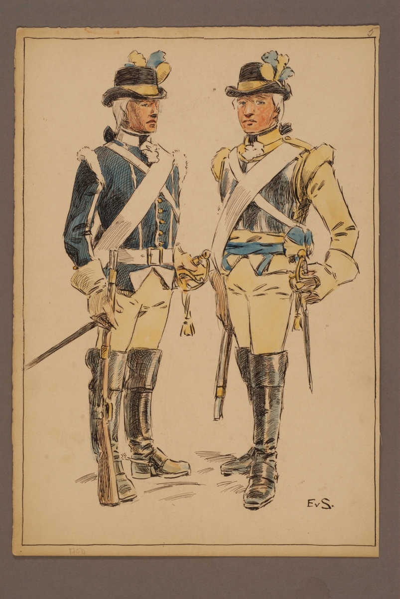 Plansch med uniform för Livregementet till häst, ritad av Einar von Strokirch.