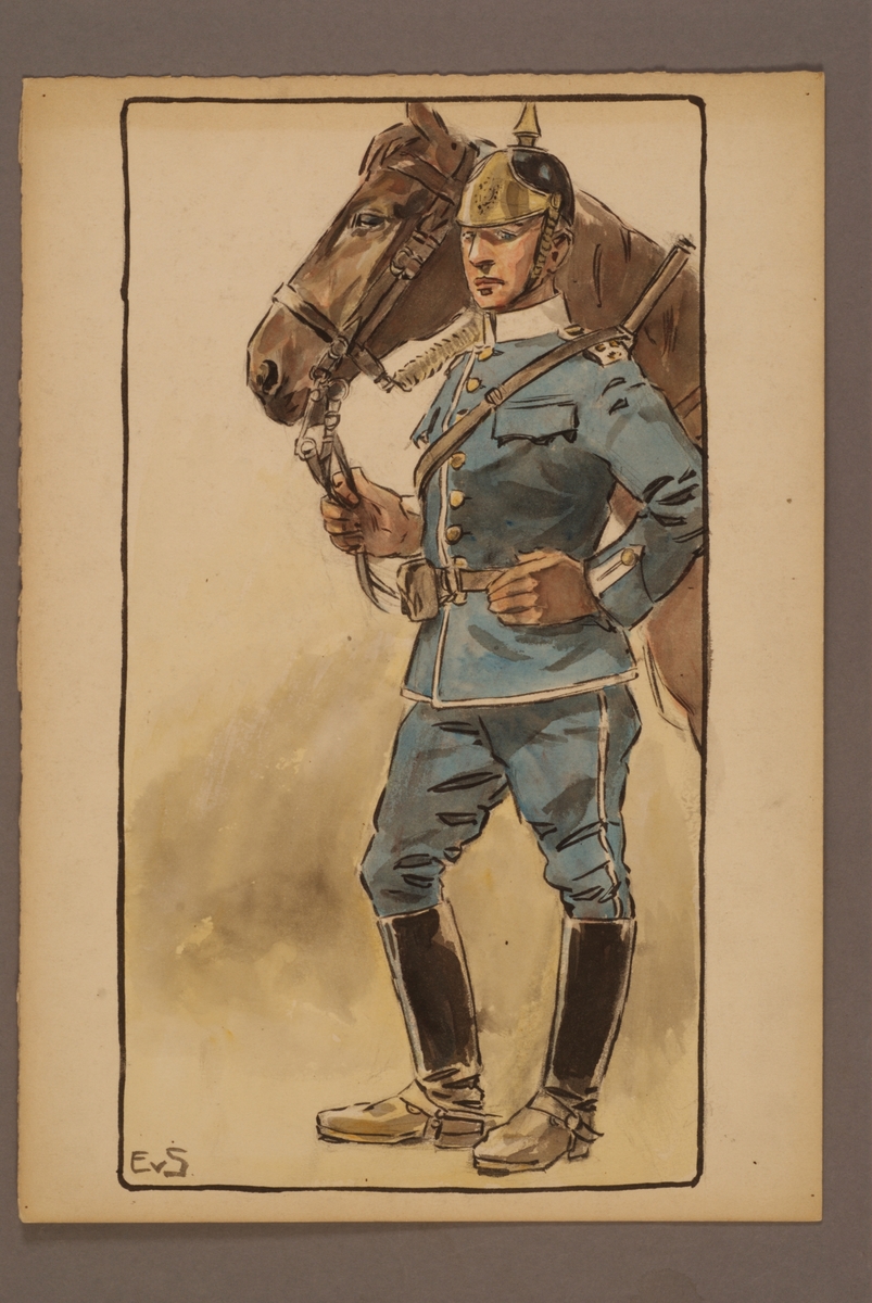 Plansch med uniform för Livregementets dragoner, ritad av Einar von Strokirch.
