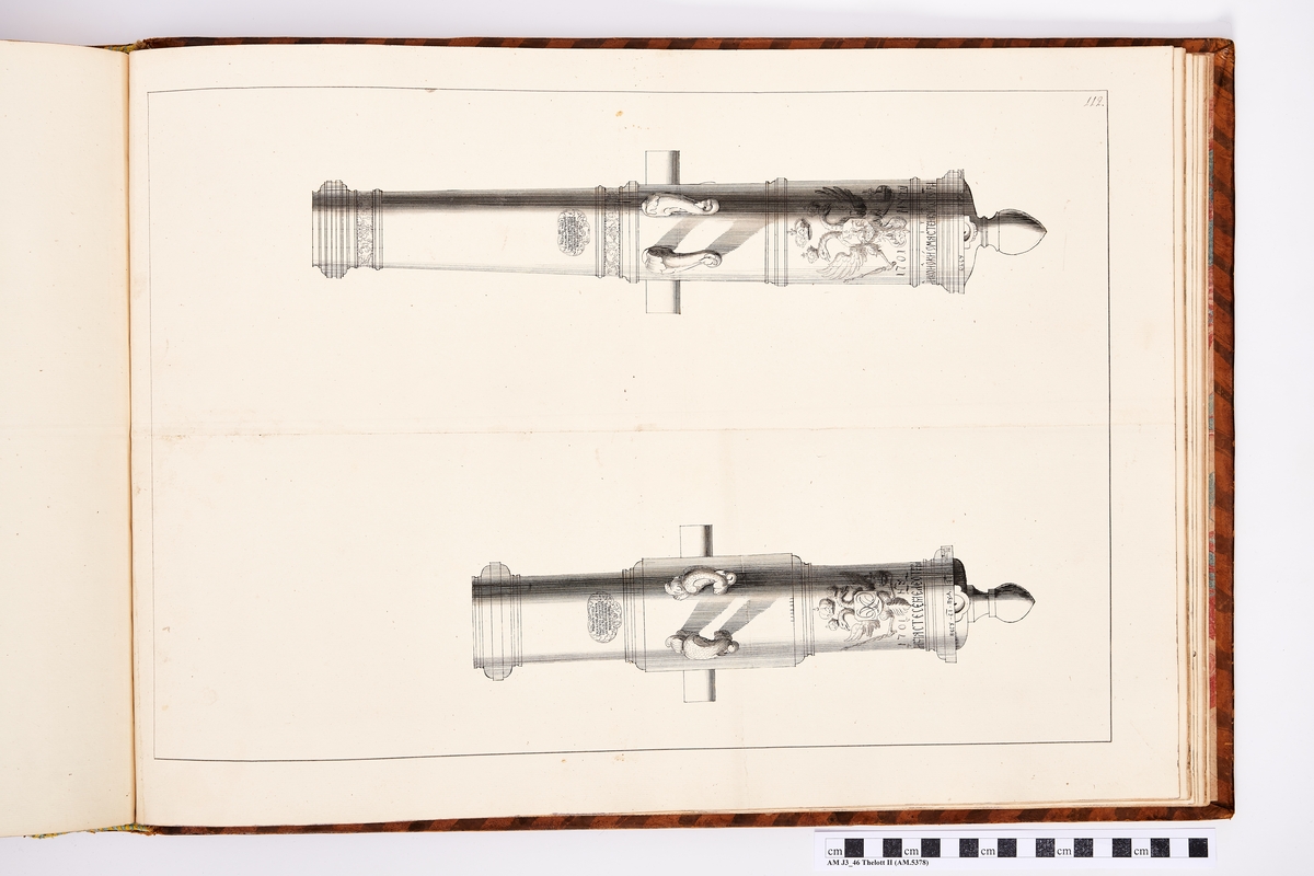 Avbildning föreställande eldrör tagna som troféer av den svenska armén vid Gemürtenhof den 16 juli 1705. Ingår i volym med avbildade kanontroféer tagna åren 1703-1706.