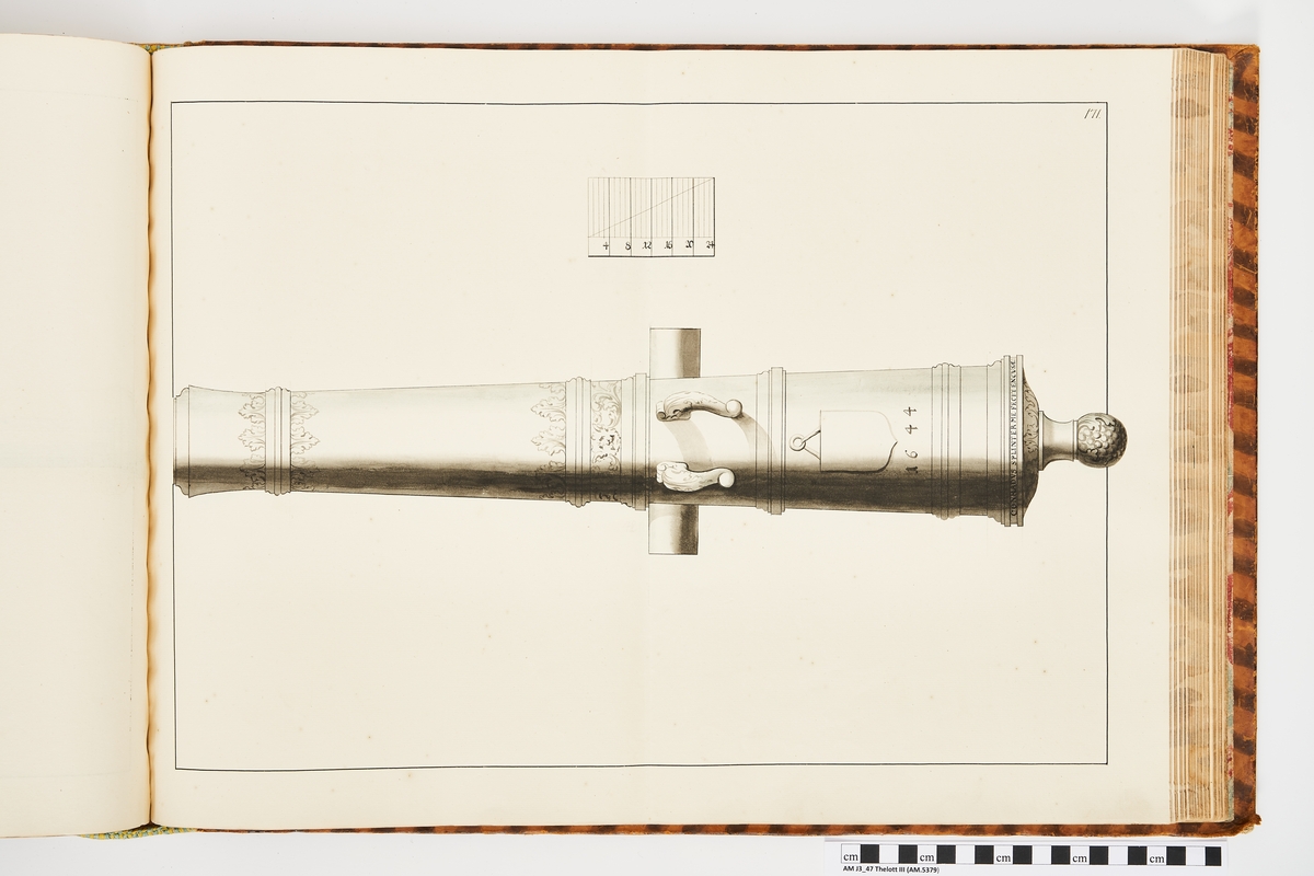 Avbildning föreställande dansk trofé med åtskilliga vapen. Ingår i volym med avbildade äldre svenska eldrör förvarade på fästningar samt eldrör erövrade åren 1598-1679.