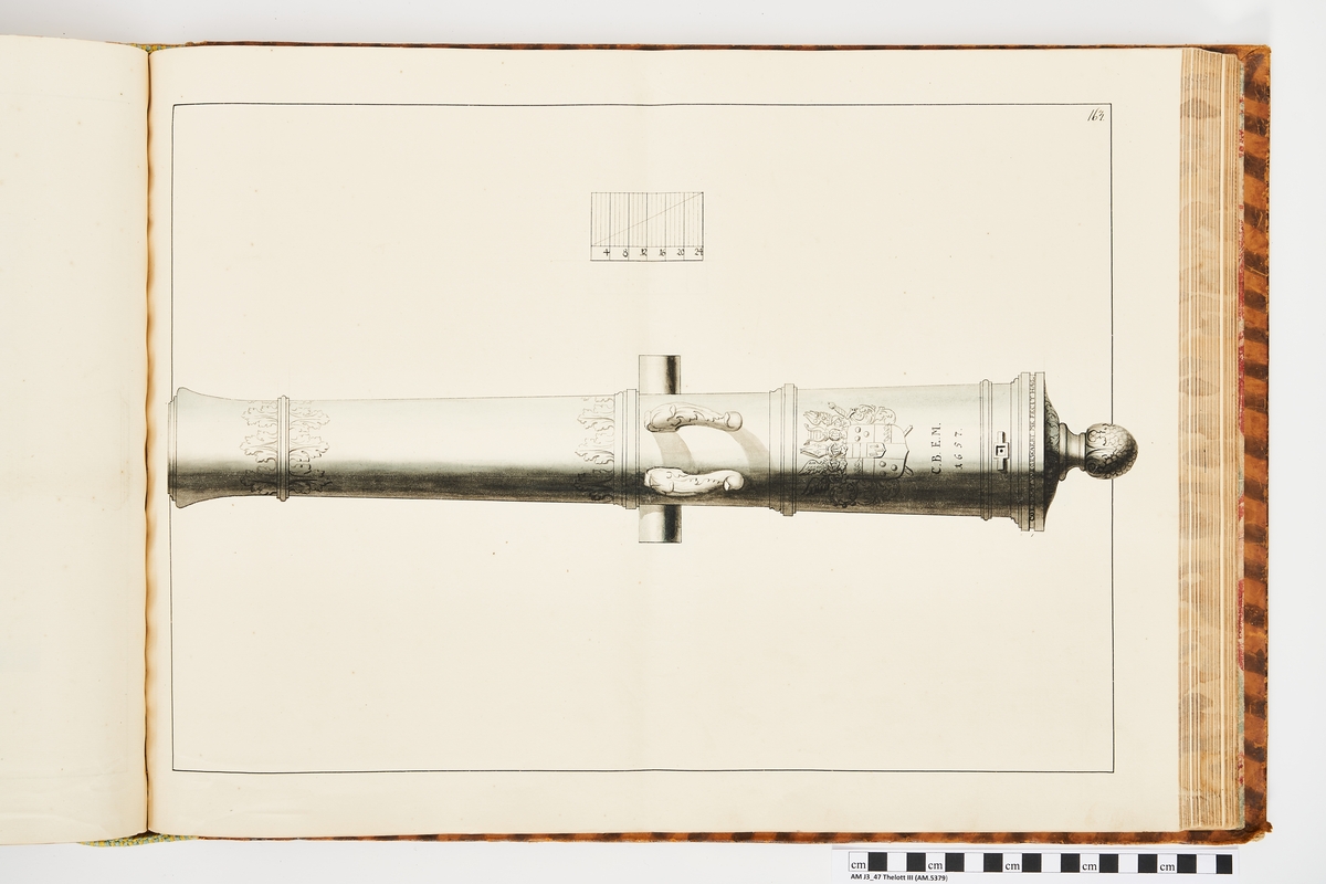 Avbildning föreställande dansk trofé med åtskilliga vapen. Ingår i volym med avbildade äldre svenska eldrör förvarade på fästningar samt eldrör erövrade åren 1598-1679.