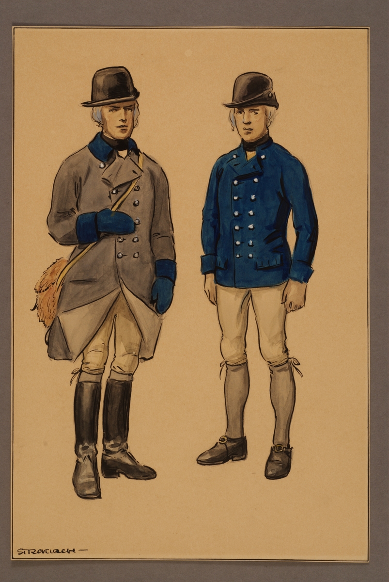 Plansch med uniform för trossdräng vid Västgöta kavalleriregemente 1788, ritad av Einar von Strokirch.