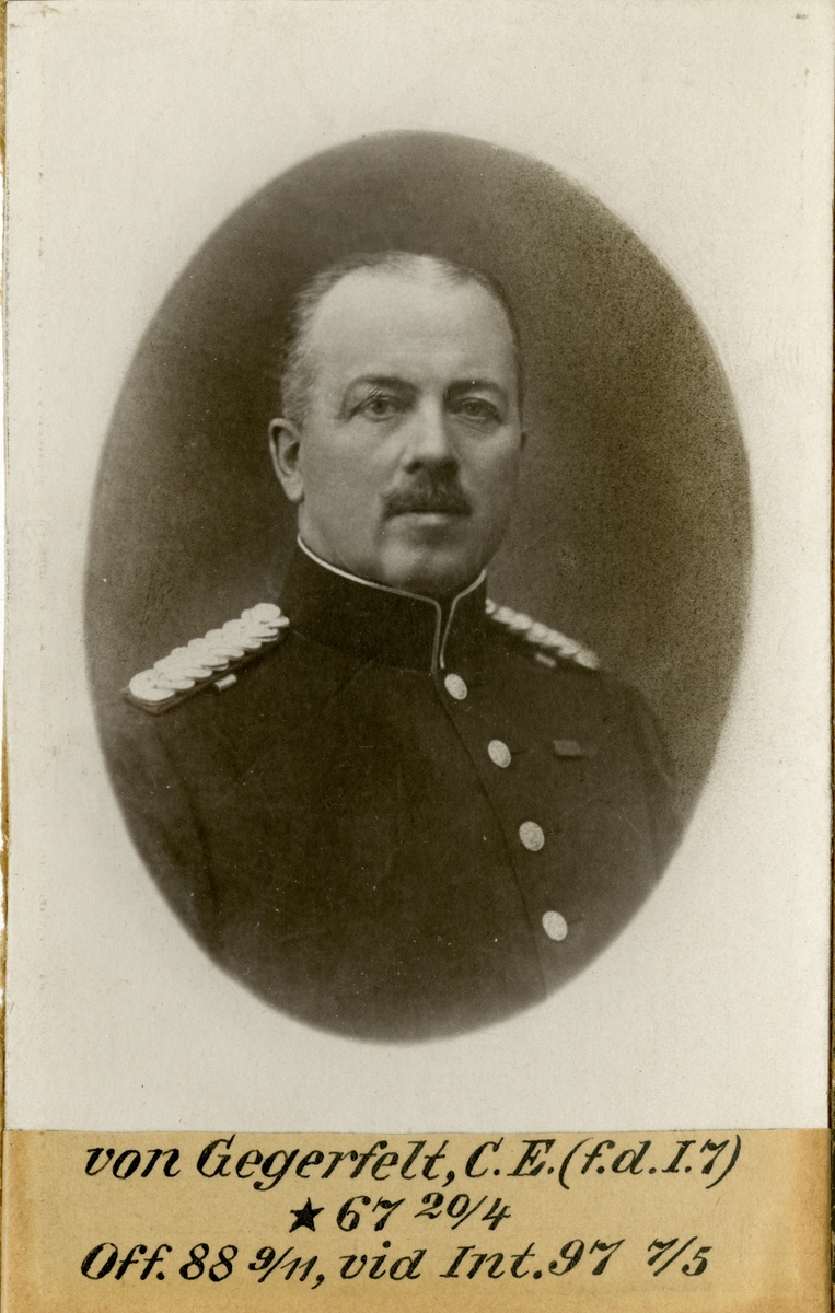 Porträtt av Carl Eric von Gegerfelt, officer vid Smålands grenadjärkår och Intendenturkåren.