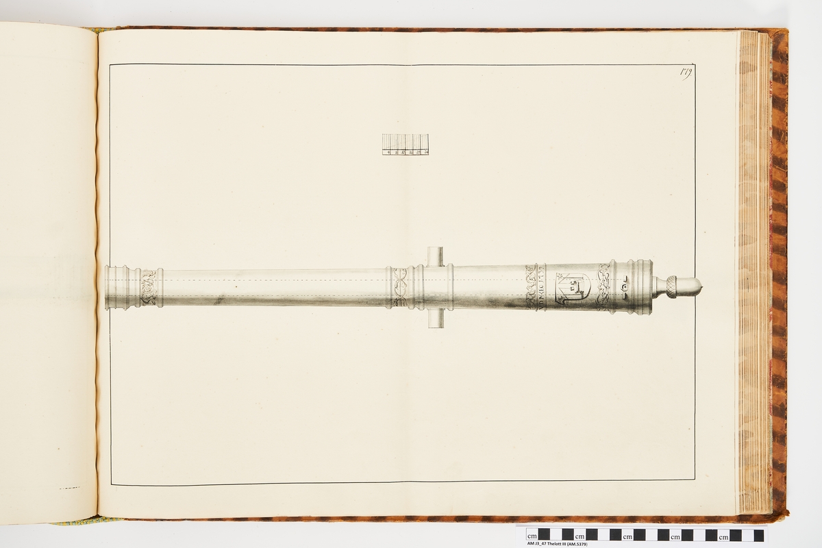 Avbildning föreställande dansk trofé. Ingår i volym med avbildade äldre svenska eldrör förvarade på fästningar samt eldrör erövrade åren 1598-1679.
