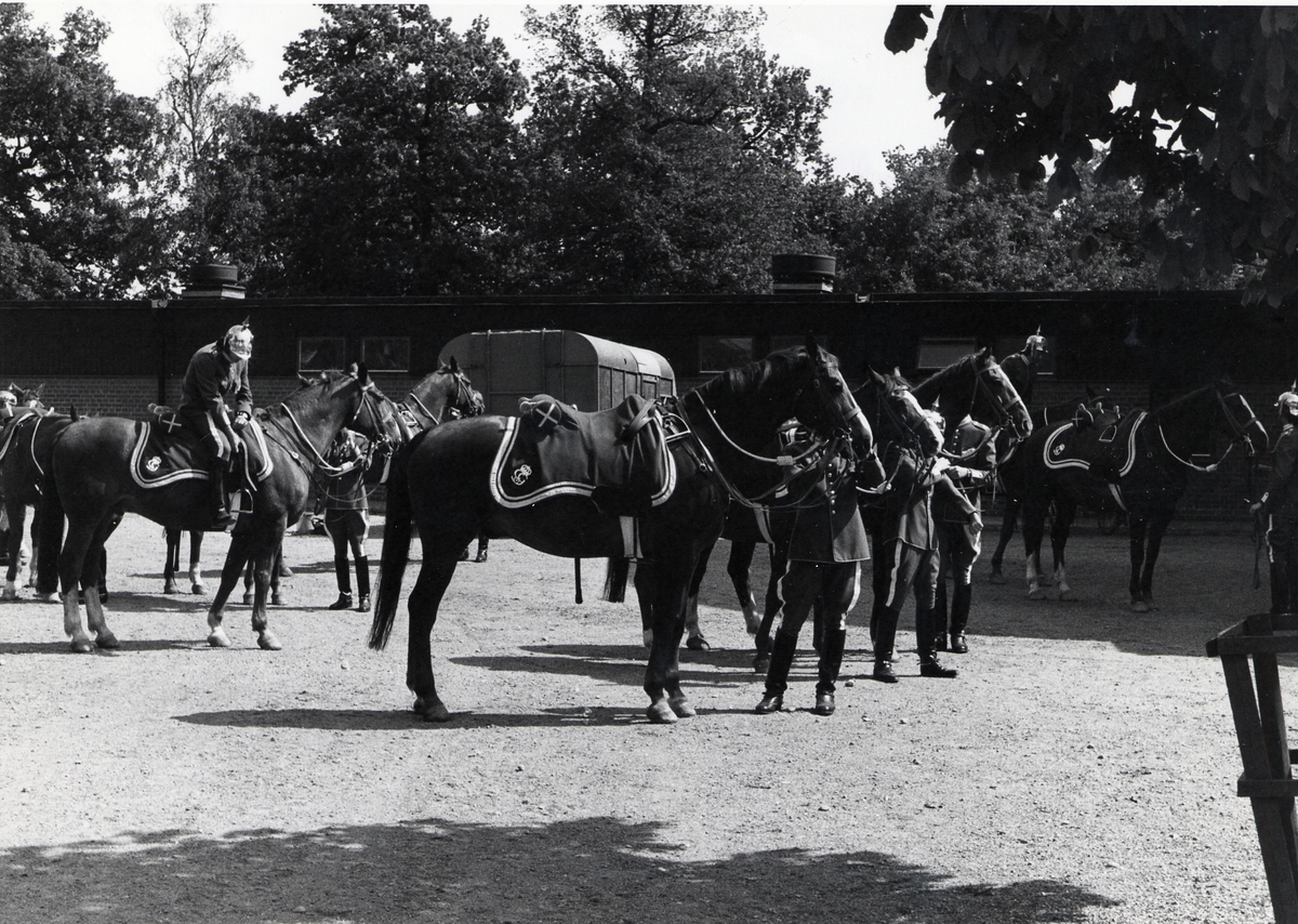 Titel: Livgardets dragoner K 1 övar kortegevägen inför kungabröllopet.