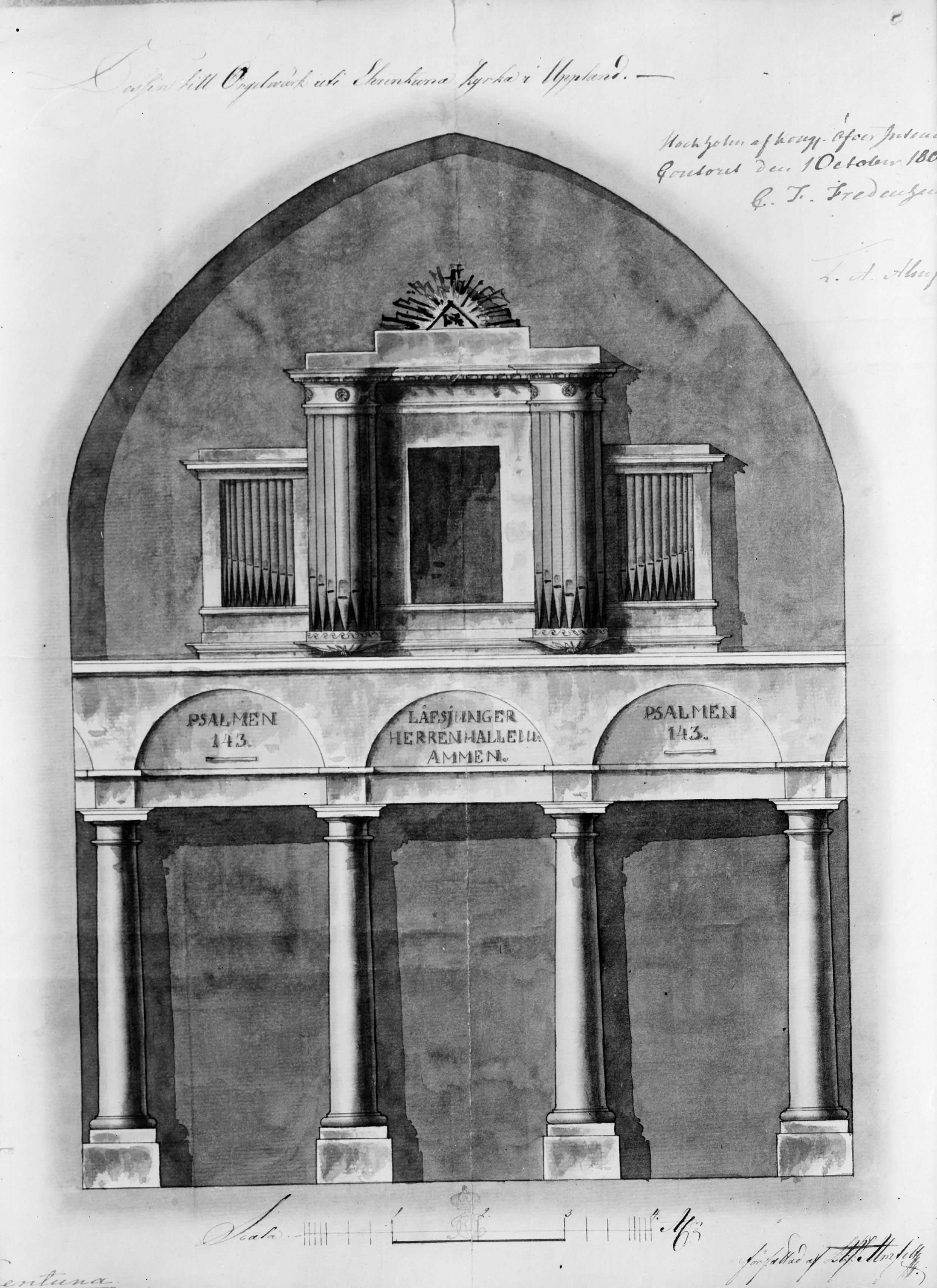 Orgelfasad, efter ritning i Byggnadsstyrelsen, 1802. Avfotograferad.