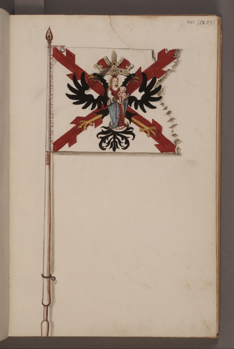 Titel: Avbildning i gouache föreställande fälttecken taget som trofé av svenska armén. Det avbildade standaret finns inte bevarat i Armémuseums samling.