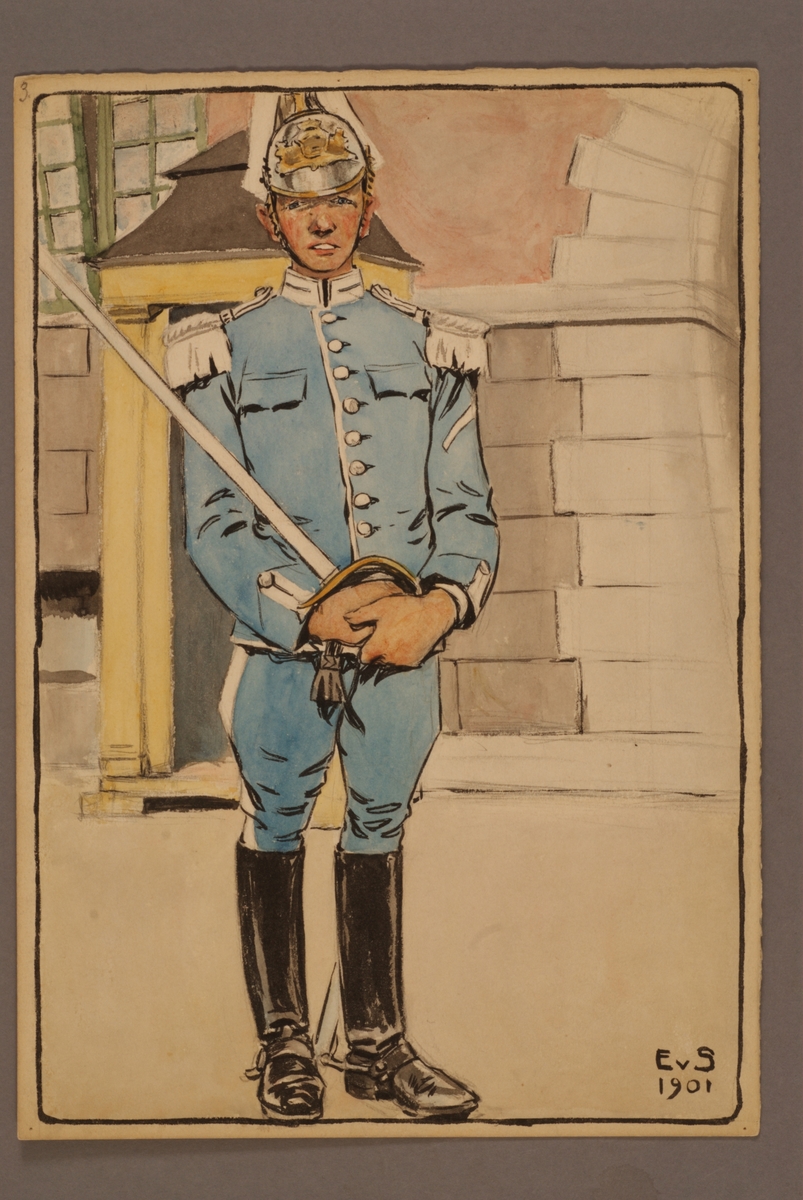 Plansch med uniform för Livgardet till häst, ritad av Einar von Strokirch.