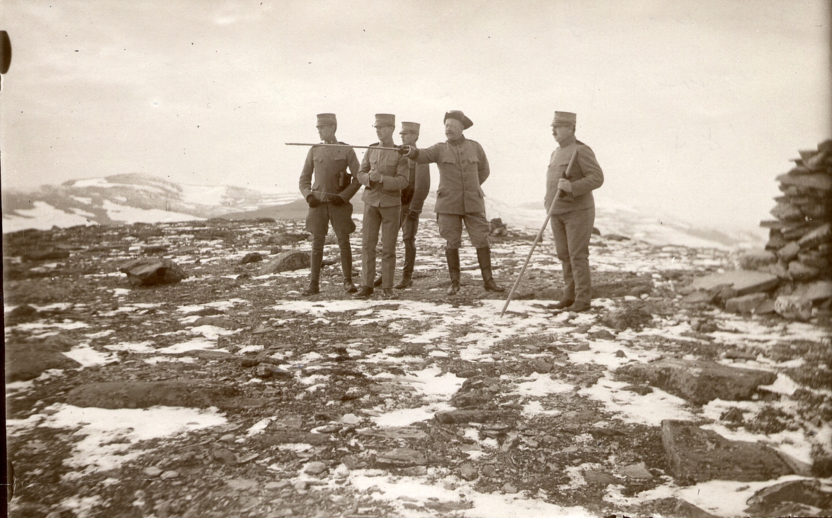 Officerare vid Treriksröset under befälsövning i Abiskotrakten 1912.