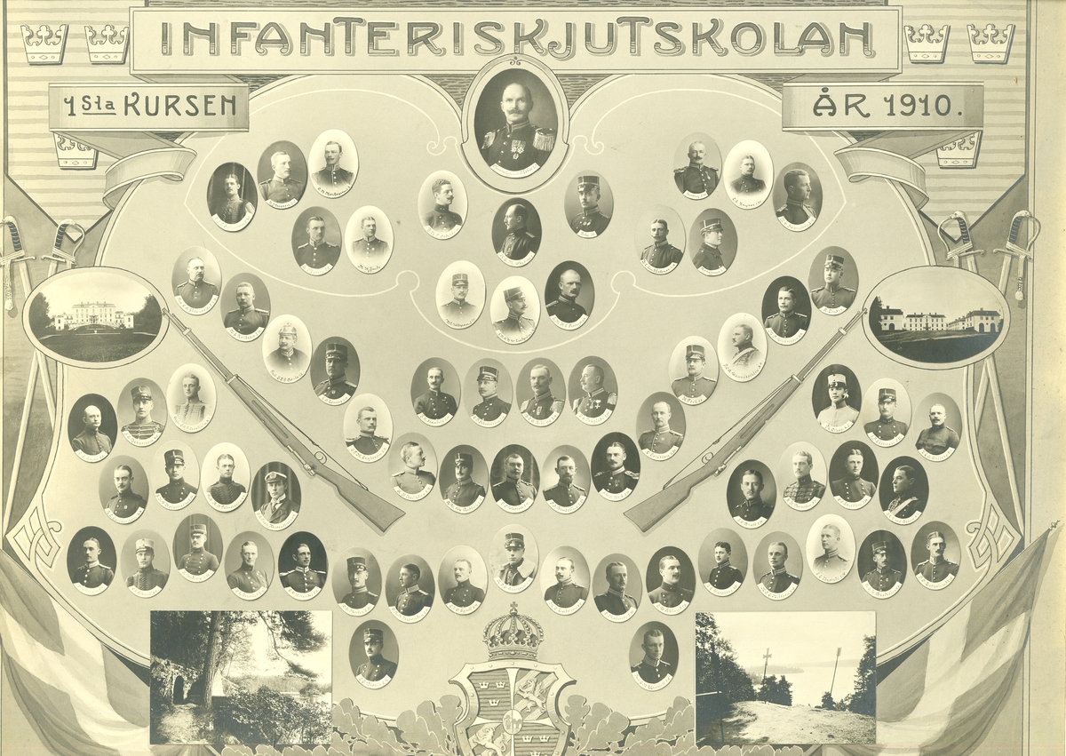 Titel: Första Kursen vid Infanteriskjutskolan år 1910.