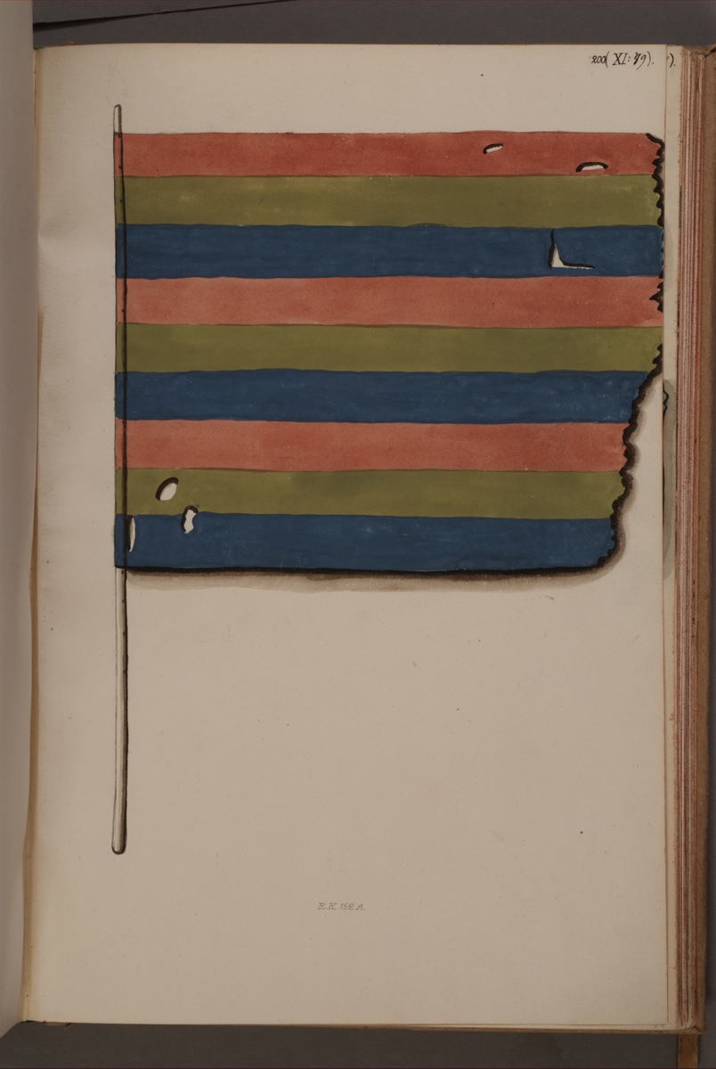 Titel: Avbildning i gouache föreställande fälttecken taget som trofé av svenska armén. Den avbildade fanan finns bevarad i Armémuseums samling, för mer information, se relaterade objekt