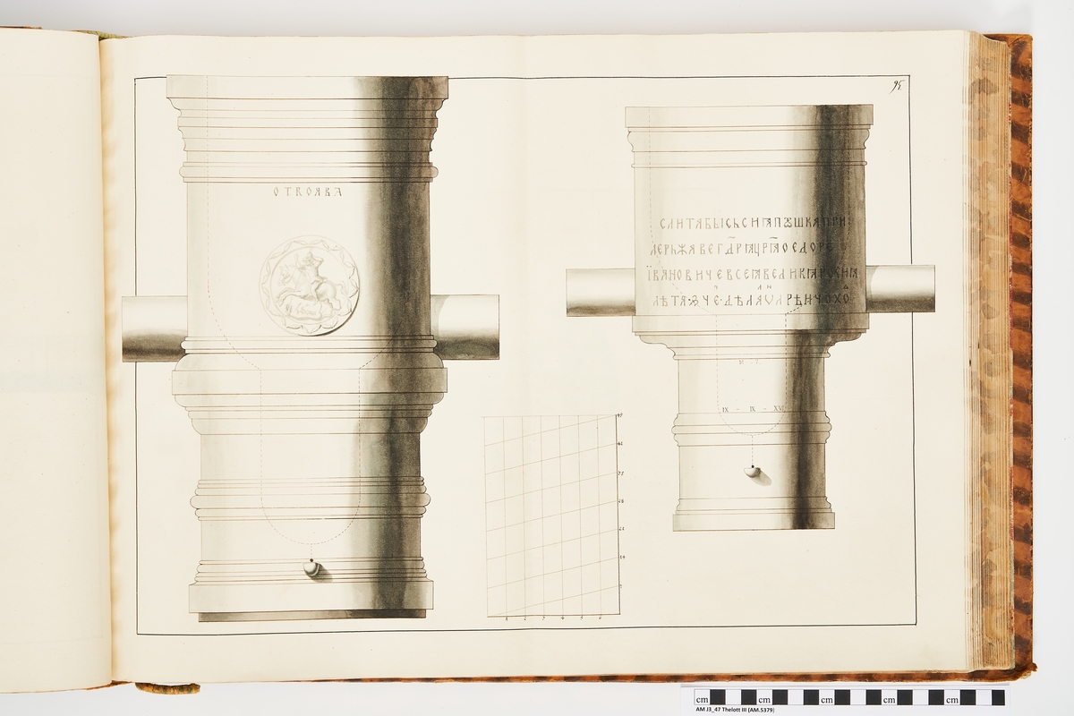 Avbildning föreställande ryska troféer tagna ifrån Novgorod den 10 juli 1614. Ingår i volym med avbildade äldre svenska eldrör förvarade på fästningar samt eldrör erövrade åren 1598-1679.