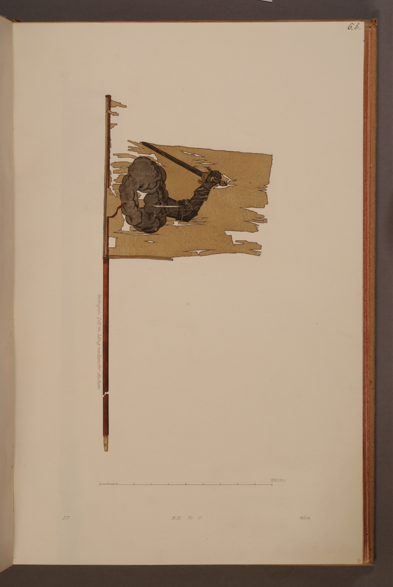 Avbildning i gouache föreställande fälttecken taget som trofé av svenska armén. Det avbildade standaret finns bevarat i Armémuseums samling, för mer information, se relaterade objekt.