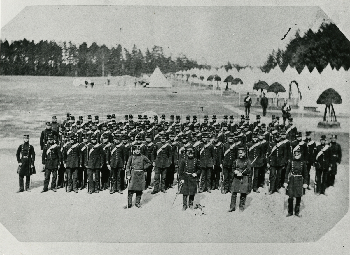 Titel: Officerare och soldater vid Jönköpings regemente I 12 på Skillingaryd.