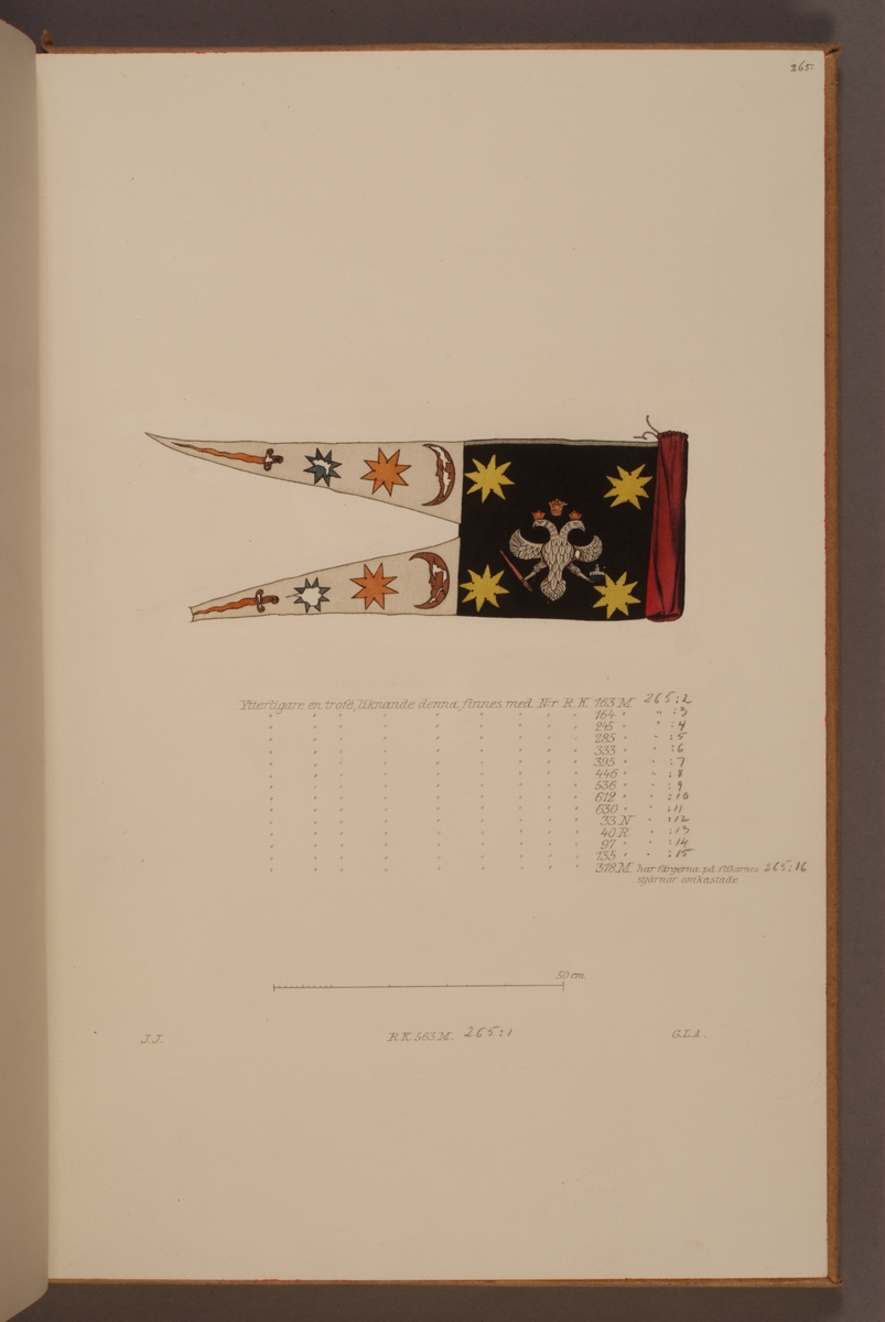 Avbildning i gouache föreställande fälttecken taget som trofé av svenska armén. Den avbildade lansfanan finns bevarad i Armémuseums samling, för mer information, se relaterade objekt.