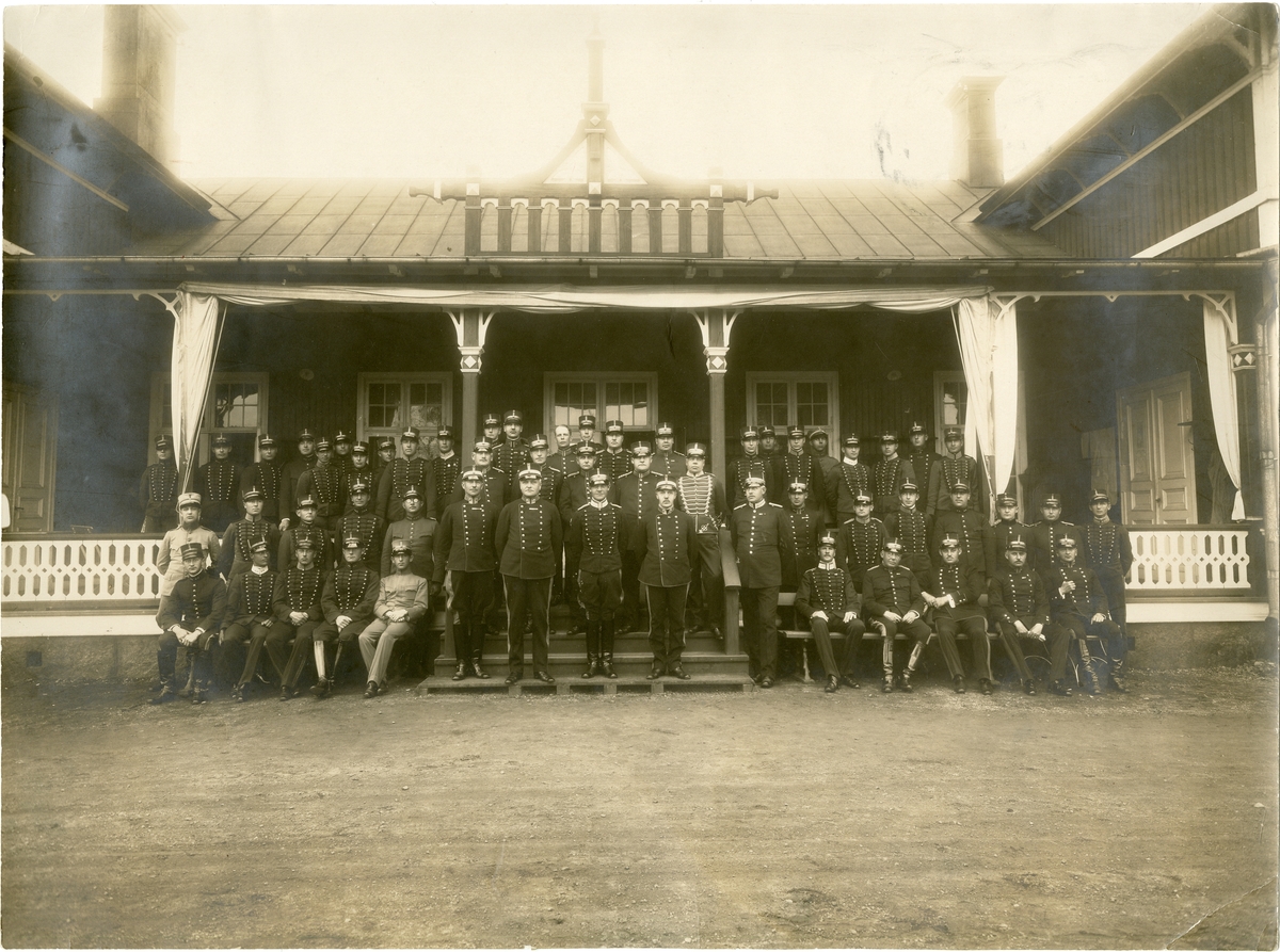 Titel: Grupporträtt av officerare vid okänt artilleriregemente.