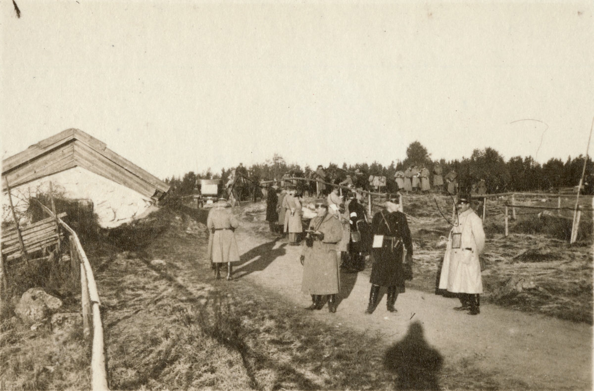 Titel: Samling vid landsvägen. Fälttjänstövning i Uppland.