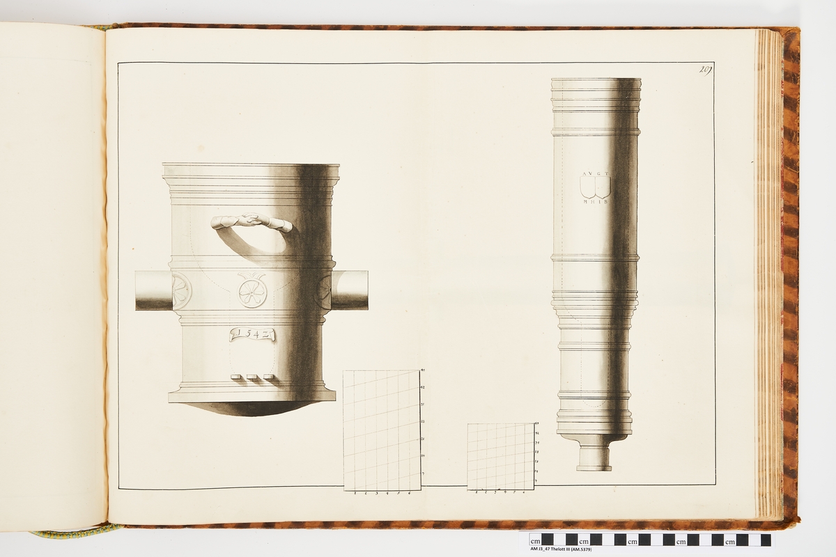 Avbildning föreställande troféer av okänd nationalitet. Ingår i volym med avbildade äldre svenska eldrör förvarade på fästningar samt eldrör erövrade åren 1598-1679.