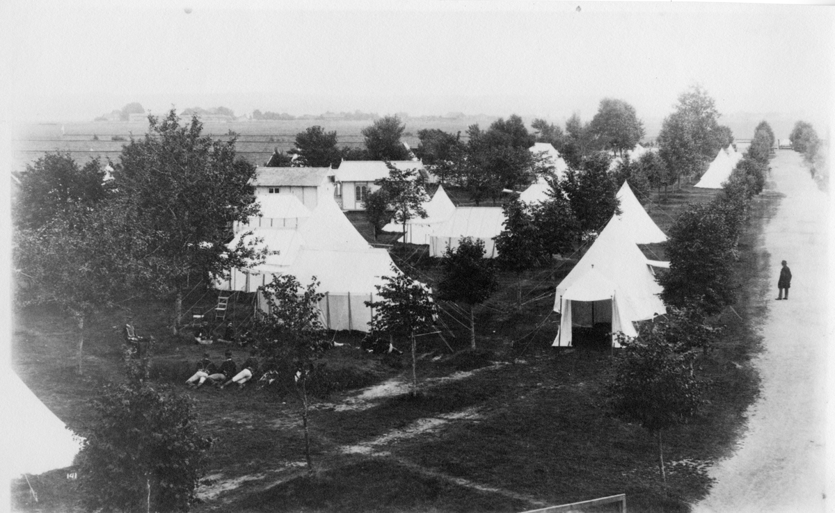 Titel: Soldater ur Livregementets husarer K 3, Örebro skvadron, läser instruktioner bland tälten på Sanna hed.