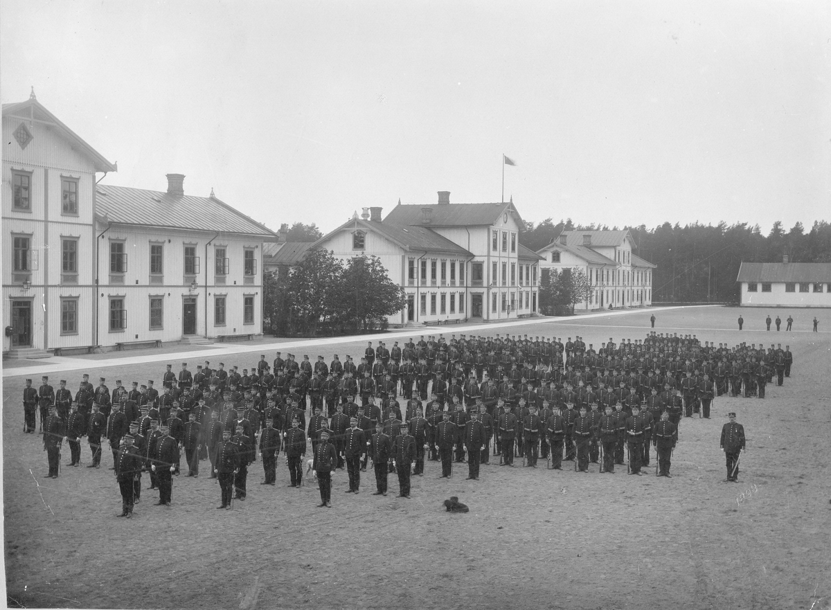 Trupp i givakt på exercisgården vid logementet, Karlsborgs fästning.