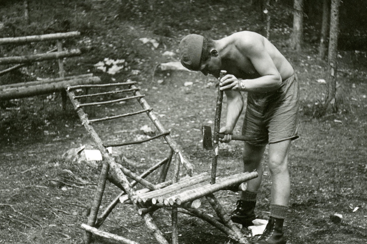 Titel: Snickeriarbete på fält under beredskapstiden.