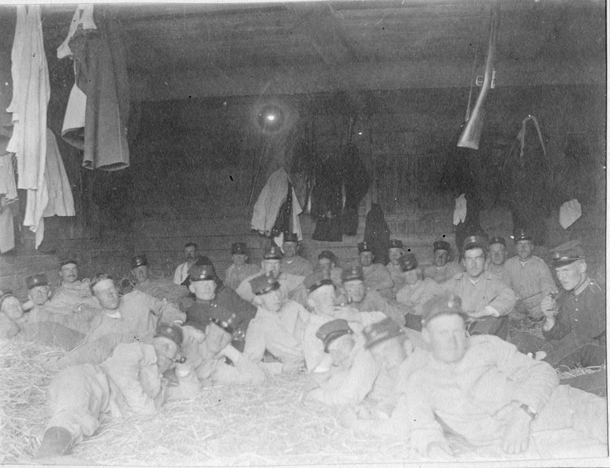 Titel: Soldater ur Hälsinge regemente I 14 har slagit läger i lada.