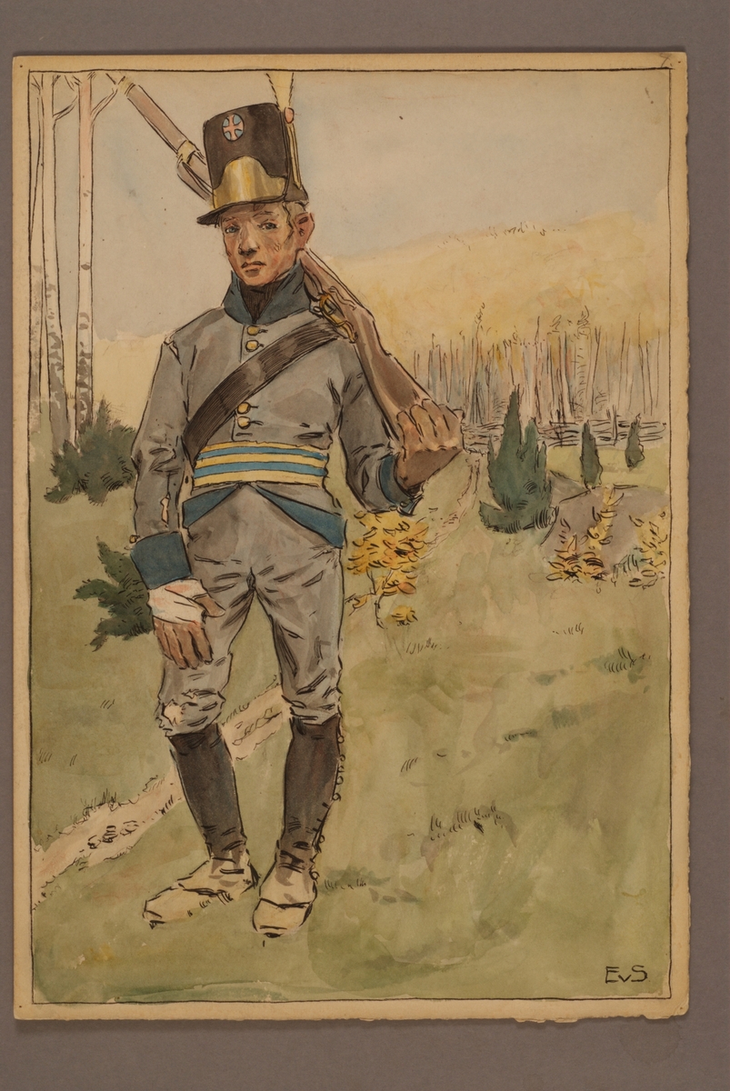 Plansch med uniform för Infanteriets jägare 1806, ritad av Einar von Strokirch.