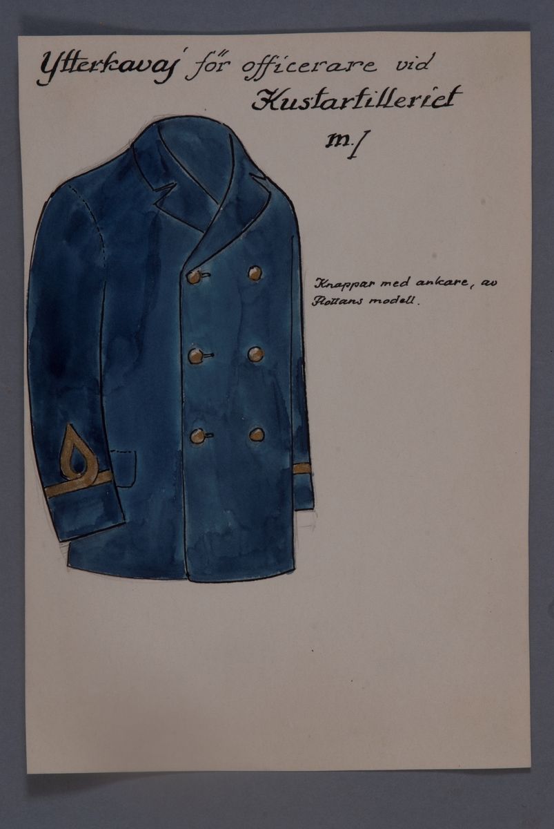 Uniformsteckning i original av Einar von Strokirch, ytterkavaj för officer vid Kustartilleriet.