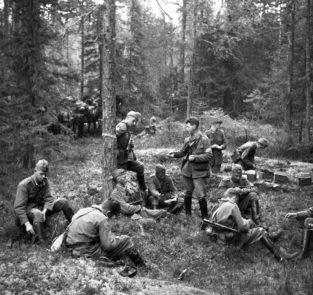 Rast i skogen. Norrlands dragonregemente K4, Umeå, 1955-1956.