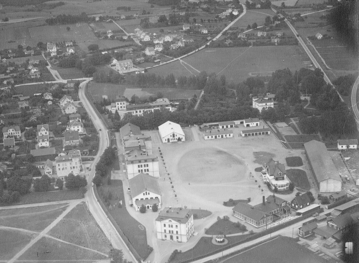 Titel: Flygbild över Göta trängregemente T 2 regementsområde i Skövde.