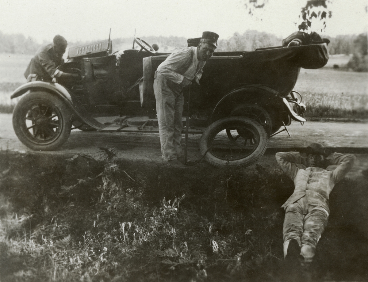 Titel: Text i fotoalbum: "Instruktören begagnar tillfället till siesta."