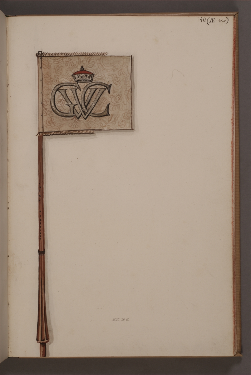 Avbildning i gouache föreställande fälttecken taget som trofé av svenska armén. Det avbildade standaret finns bevarat i Armémuseums samling, för mer information, se relaterade objekt.