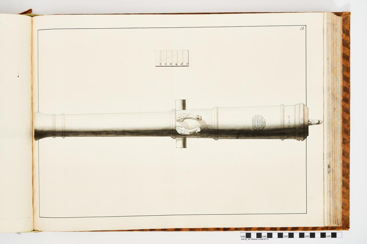 Avbildning föreställande eldrör återtaget som trofé av den svenska armén i slaget vid Narva den 20 november 1700. Ingår i volym med avbildade kanontroféer tagna åren 1700-1702.